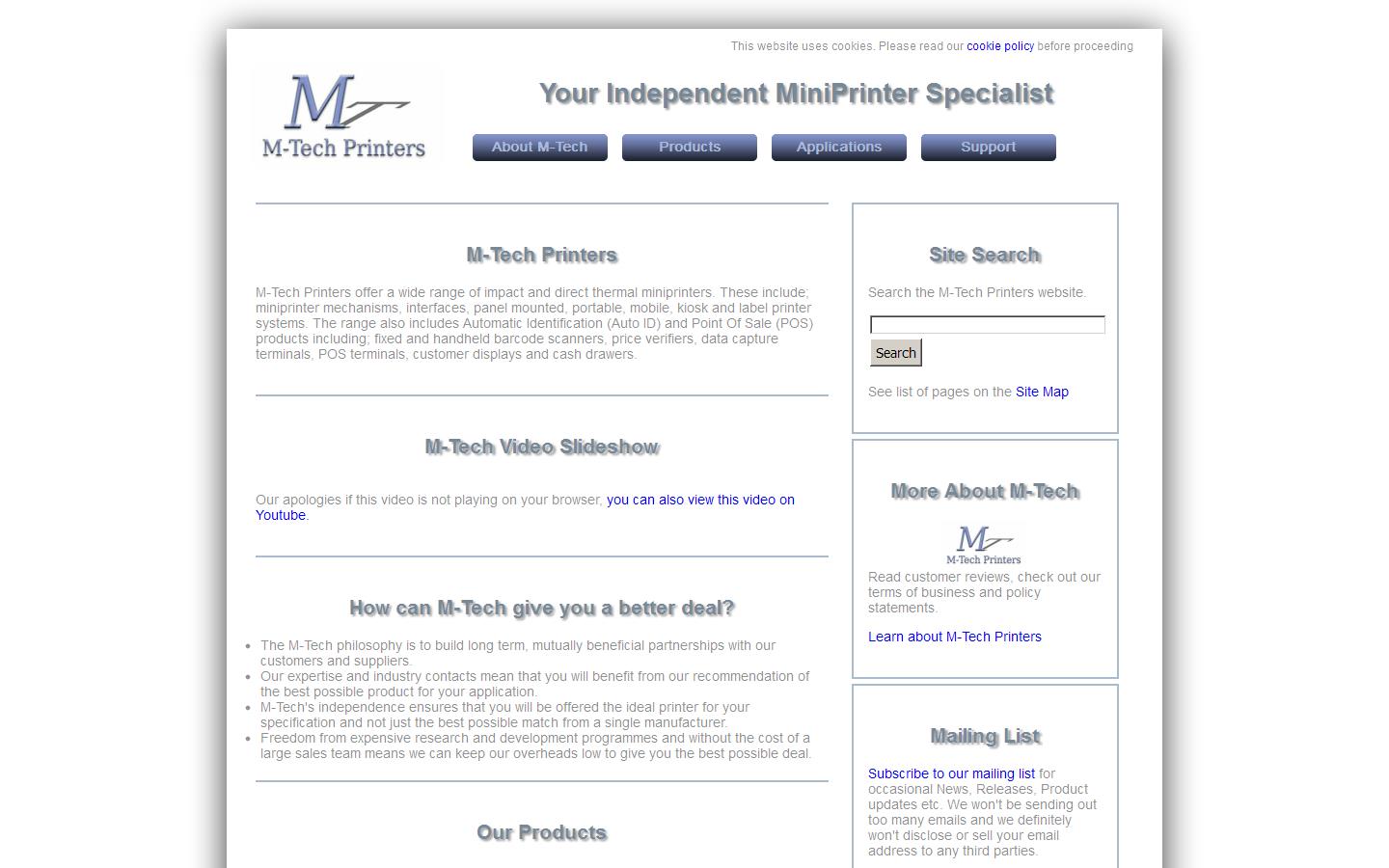 M-Tech Printers offer a wide range of impact and direct thermal miniprinters. These include; miniprinter mechanisms, interfaces, panel mounted, portable, mobile, kiosk and label printer systems. The range also includes Automatic Identification (Auto ID) and Point Of Sale (POS) products including; fixed and handheld barcode scanners, price verifiers, data capture terminals, POS terminals, customer displays and cash drawers.