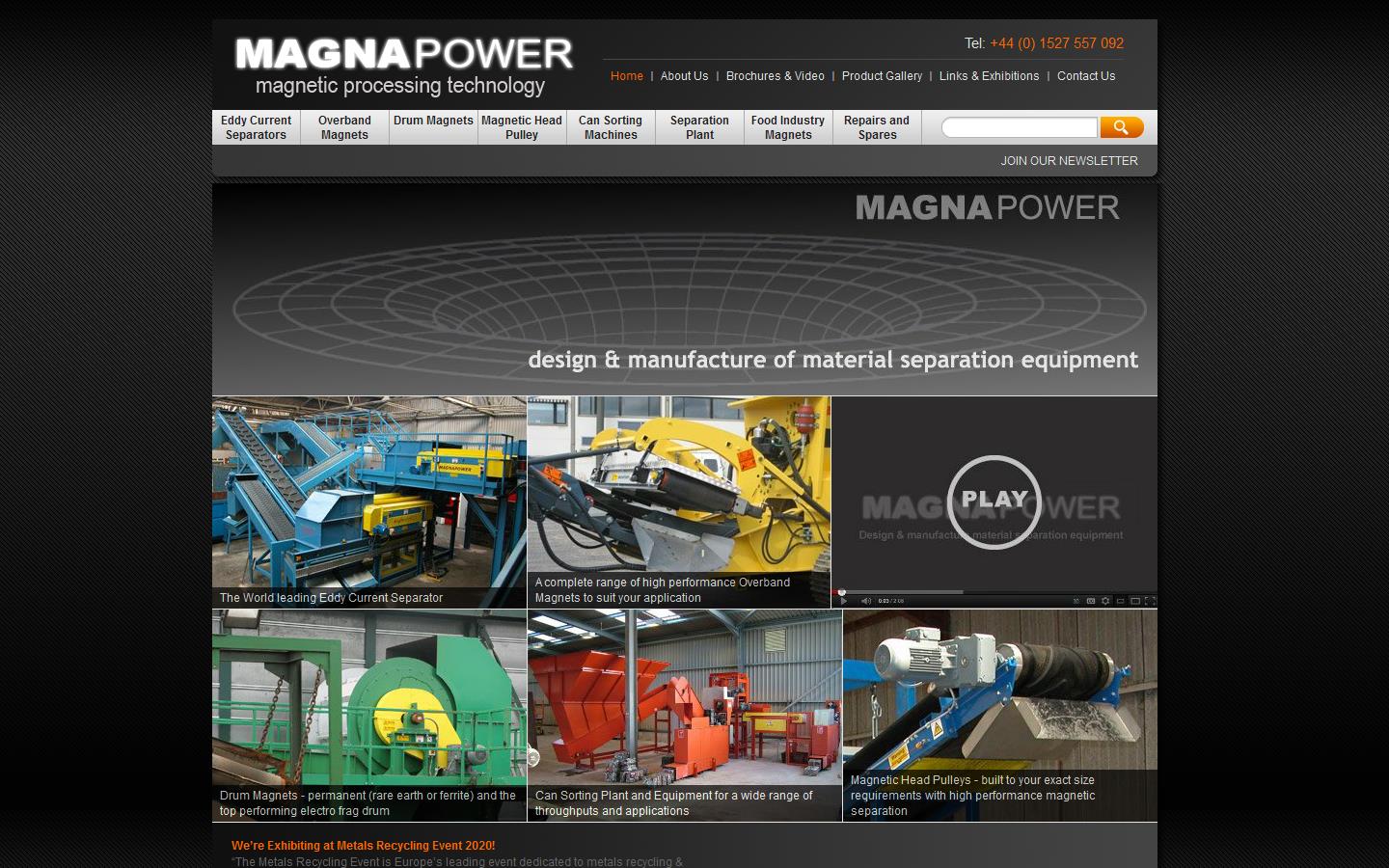 Magnapower are at the forefront of metal separation technology and our experience in the design, manufacture and application of magnetic equipment has given us the leading edge in metal separation technology. All our machinery has been designed, tested and proven in the most arduous conditions. We work in conjunction with our customers to ensure that the highest level of clean metal recovery (both ferrous and non ferrous) is achieved. We offer Eddy Current Separators Overband Magnets Drum Magnets Magnetic Pulleys Can Sorters and Mini MRF design.