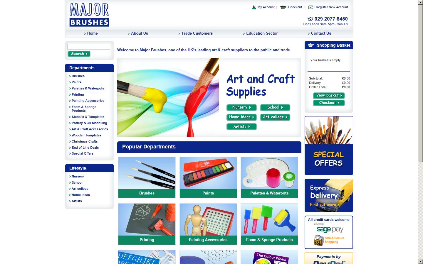 Major Brushes supplies a wide range of art and craft materials to both the educational and retail markets. Although most products are supplied to the educational market, Major Brushes has sourced and developed many products for specialist users. The range includes artist brushes, paint palettes, water pots, paint, clay tools, lino printing materials, lettering stencils and foam shapes.