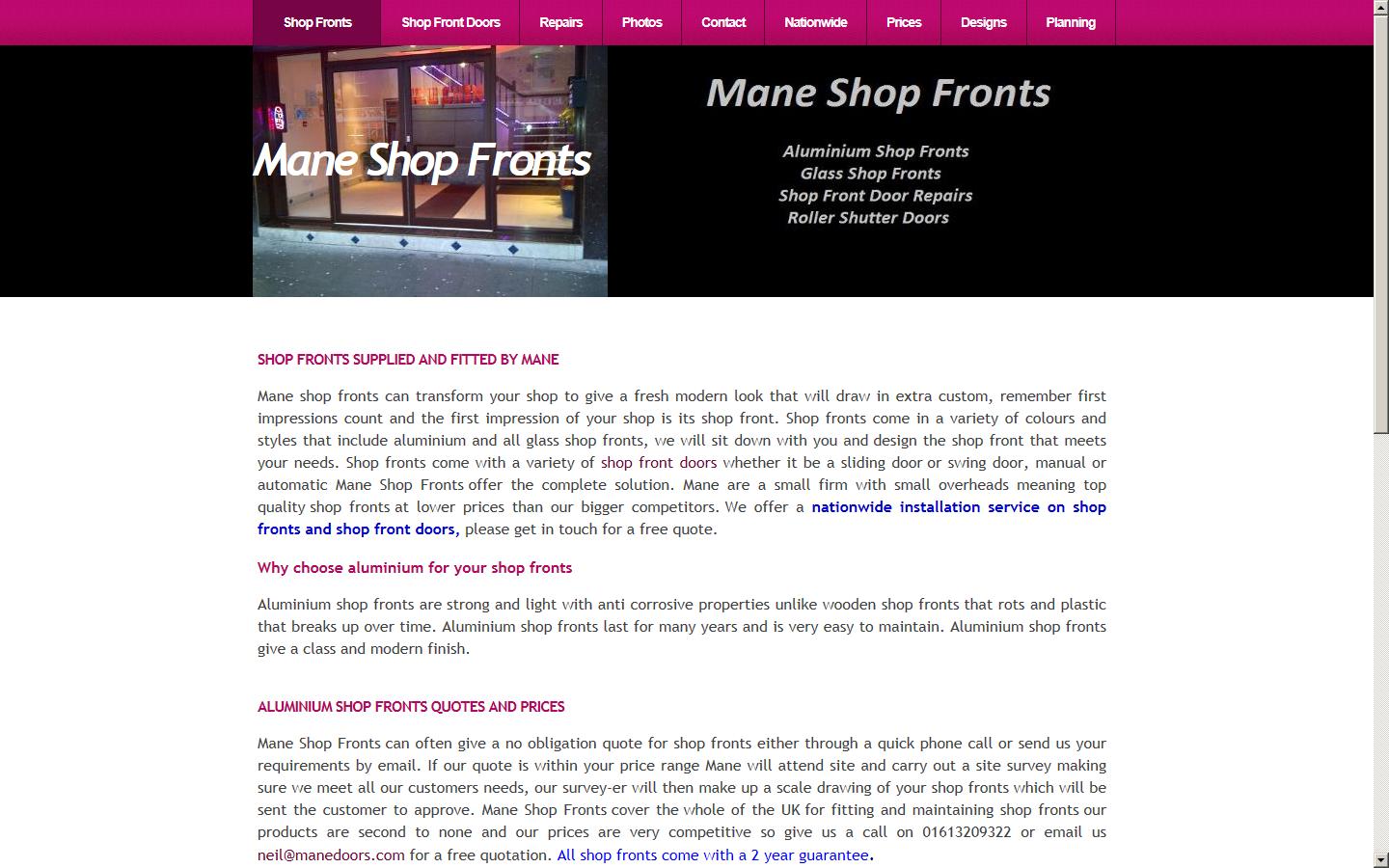 Mane shop fronts can transform your shop to give a fresh modern look that will draw in extra custom, remember first impressions count and the first impression of your shop is its shop front. Shop fronts come in a variety of colours and styles that include aluminium and all glass shop fronts, we will sit down with you and design the shop front that meets your needs. Shop fronts come with a variety of shop front doors whether it be a sliding door or swing door, manual or automatic Mane Shop Fronts offer the complete solution. Mane are a small firm with small overheads meaning top quality shop fronts at lower prices than our bigger competitors. We offer a nationwide installation service on shop fronts and shop front doors, please get in touch for a free quote.