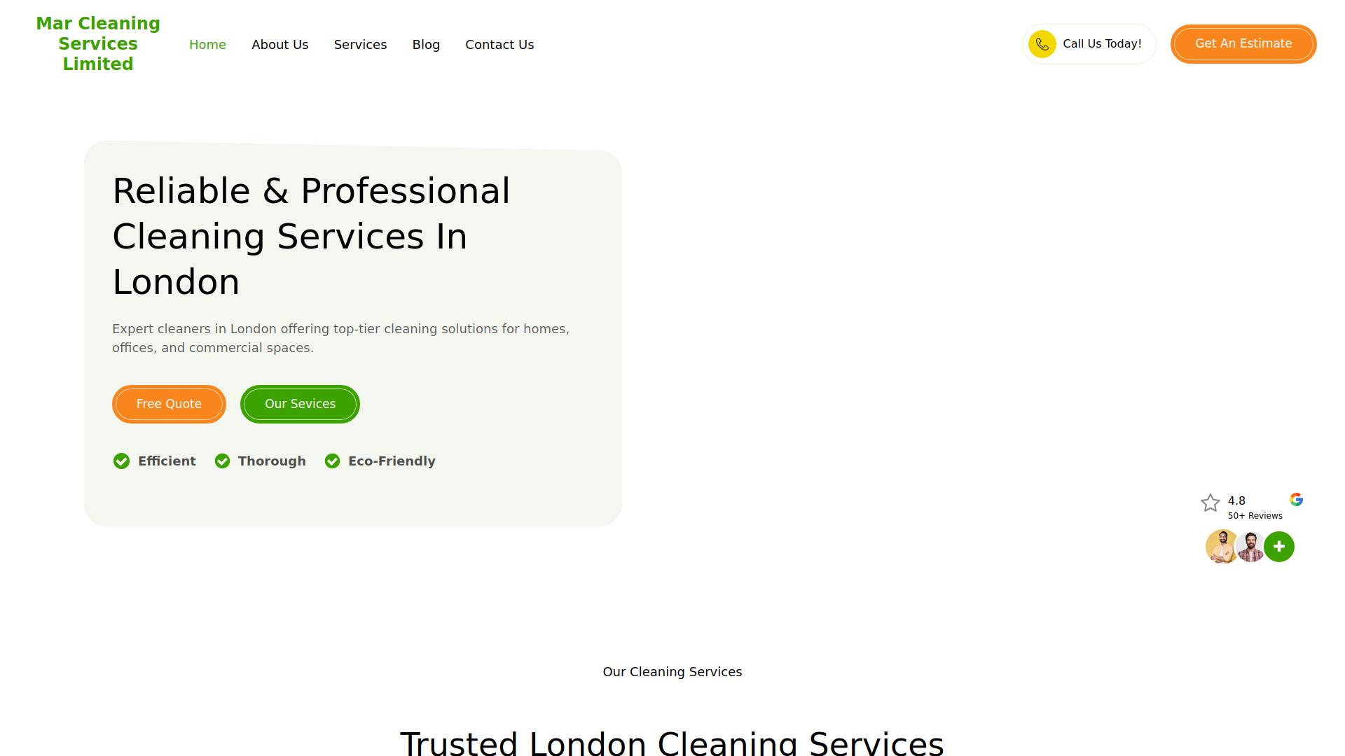 Mar Cleaning Services Limited offers top-tier professional cleaning services in London, delivering exceptional results for residential, commercial, and specialized cleaning needs. With a team of skilled experts, they ensure a spotless environment using eco-friendly products, providing reliable, affordable, and tailored solutions to meet every client's unique requirements.