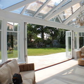 Orangeries are featuring open plan kitchen and living areas nowadays and with the inclusion of bi-folding doors, are an excellent addition to any home to bring the outside in.