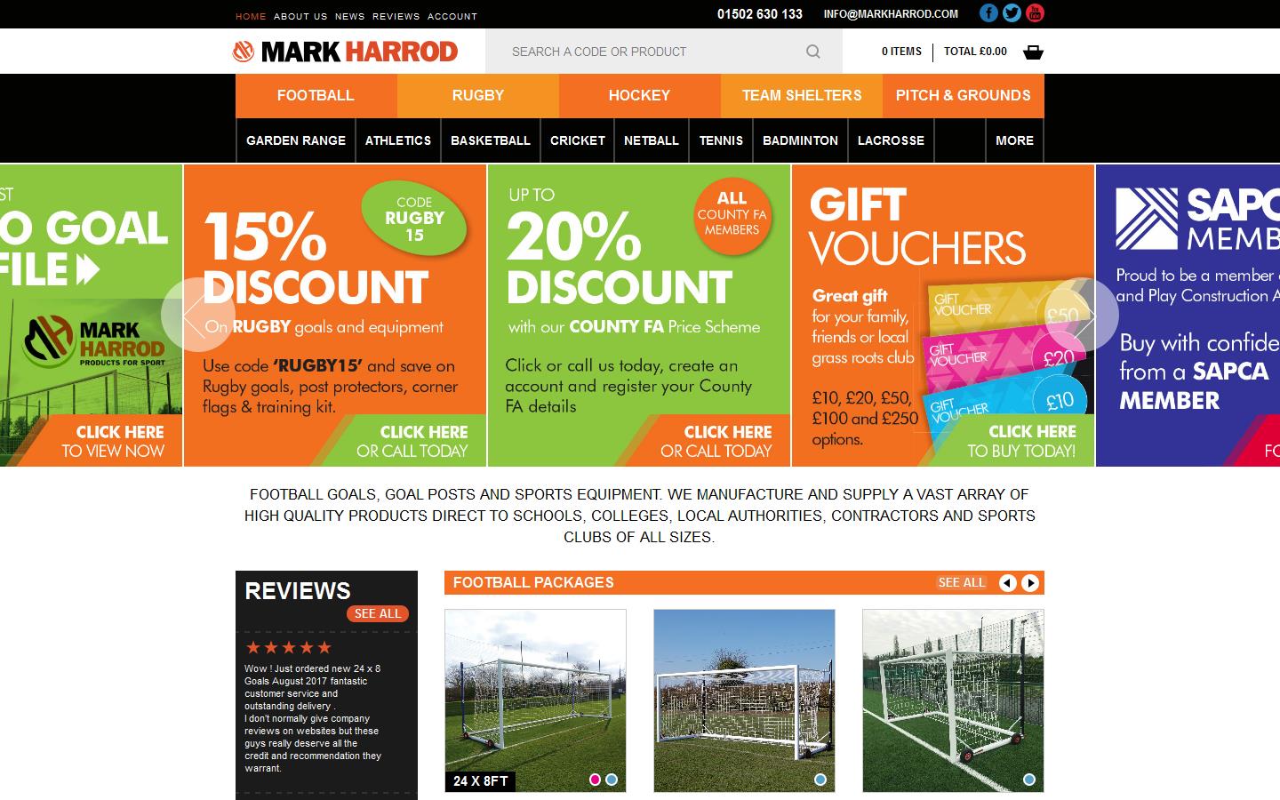 Mark Harrod Ltd is one of the leading sports equipment manufacturers in the UK and has been supplying schools, colleges, local authorities, contractors and sports clubs nationwide for over a decade. We manufacture and supply a vast array of sports equipment, much of which we’ve designed to withstand heavy use. Our range includes football, hockey, rugby, cricket, netball, badminton and much much more …