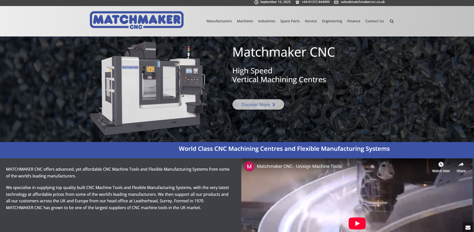 We specialise in supplying top quality built CNC Machine Tools and Flexible Manufacturing Systems, with the very latest technology at affordable prices from some of the world’s leading manufacturers. We then support all our products and all our customers across the UK and Europe from our head office at Leatherhead, Surrey. Formed in 1970 MATCHMAKER CNC has grown to be one of the largest suppliers of CNC machine tools in the UK market.