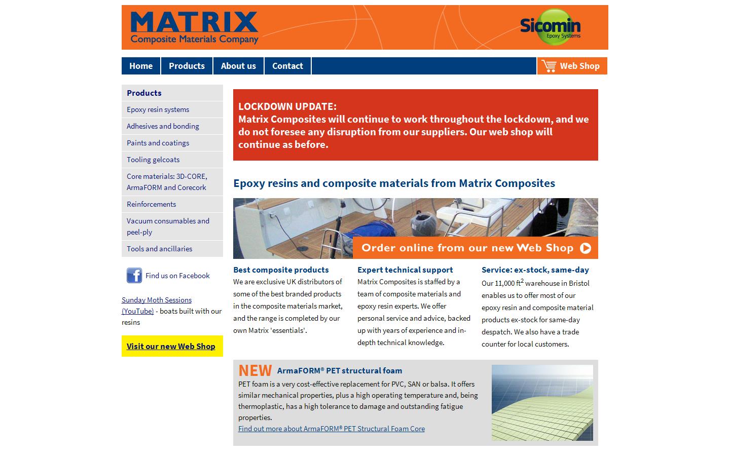 Matrix Composites was formed in 1997 as the UK distributor for the Sicomin range of epoxy resins. In the meantime, we have grown our product range to include a number of other high-quality branded products, and we have also assembled our own range of Matrix 'essentials'. We now offer a complete range of materials for the high-performance, epoxy-based composite manufacturer.
