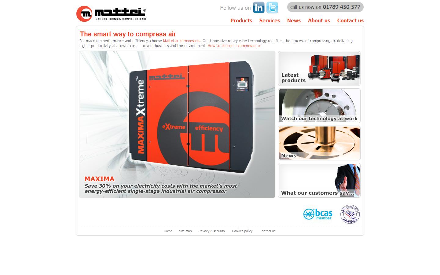 Mattei is a manufacturer of high quality, very energy efficient rotary vane air compressors. The Mattei base near to Shipston-on-Stour provides central support for its network of service engineers and distributors around the country. As well as supplying and installing new air compressors, Mattei can offer reliable compressor service and maintenance packages on all makes and types of air compressor. Mattei also offers compressed air system audits, written schemes of examination and leakage detection and management programmes.
