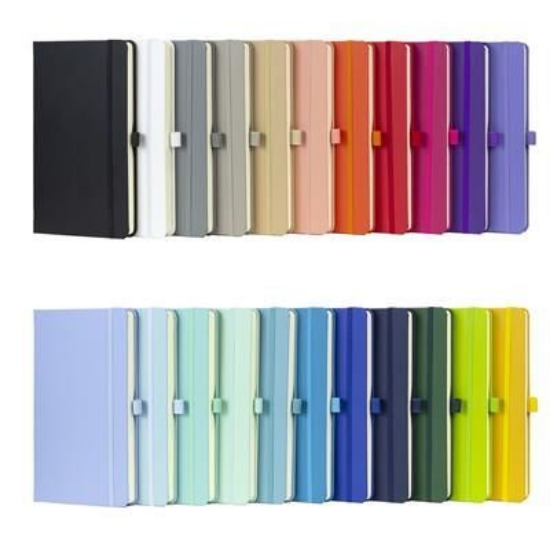 Deluxe Eco-friendly A5 Note Book Offering High Quality with Its Hardback, Soft Touch PU Cover in 13 Colours. Supplied with a Colour Matched Ribbon, Pen-Loop & Elastic Closure. Contains 160 Pages of Plain White Paper & an Inside Back Cover Pocket, Manufactured From Sustainably-sourced Paper.
