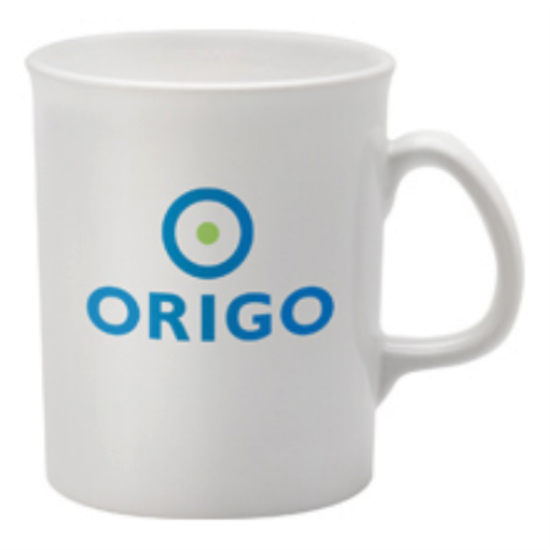 A Straight Mug with a Slightly Exaggerated Lip with a Comfortable Sized Handle, the Perfect Give Away to Sit on Any Desk.