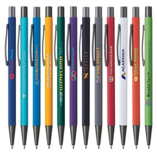 Best-Selling, Soft-Touch Metal Pen with Luxury Tactile Feel & Contemporary Gunmetal Trim. Laser Engrave to Reveal a Striking Silver Mirror Finish or Digital Print Full-Colour with Colourjet. the Bowie is Fitted with an Eversmooth Elite® German Ink Refill for a Noticeably Smoother Writing Experience. Choice of Blue or Black Writing Ink. Available in 15 Fabulous Barrel Colours.