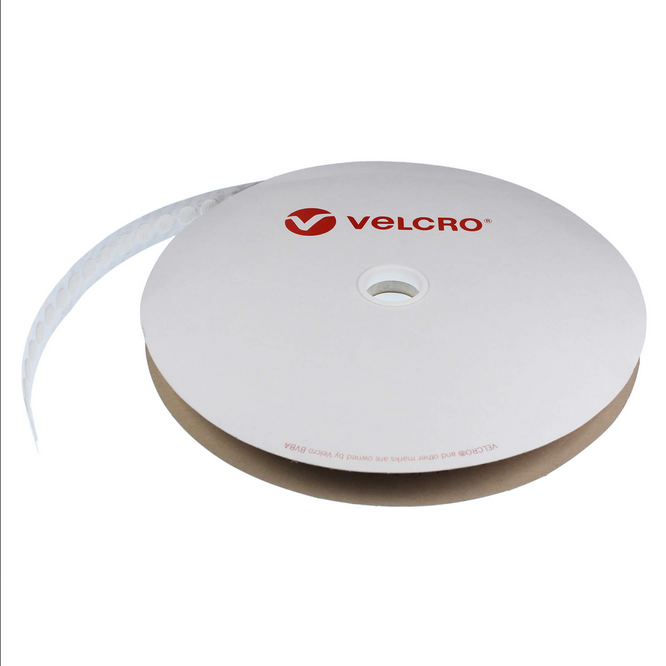 General use PS14 self adhesive white 13mm VELCRO® Brand coins, these are die-cut on 25 metre rolls that contain approx 1500 hook dots. Suitable for use on most surfaces including paper, card, rigid plastic, glass and metal. VELCRO® Brand coins are widely used for crafts, schools and colleges they are also used widely in the exhibition, display and packaging industry.