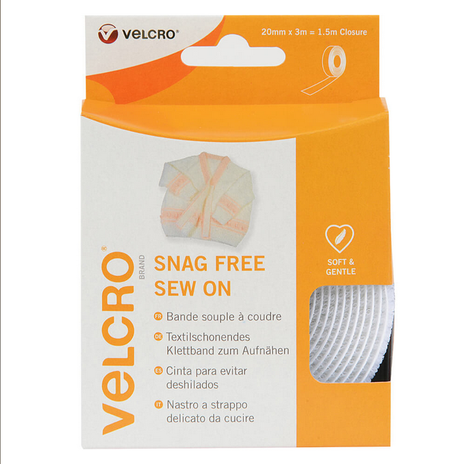 A 20mm wide special anti-snag white hook and loop tape measuring 3 metres, offering a 1.5 metre closure. Ideal for fabrics and incorporate the hook and loop in one piece, with the soft loop buffering the hooks to reduce snagging and lint build-up. The one-piece design also means no left over hook-only or loop-only pieces.