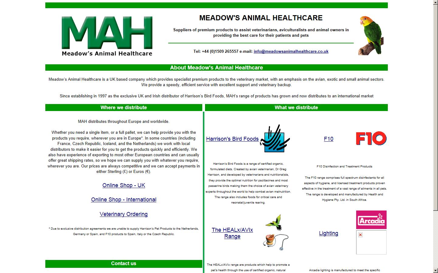 Meadow''s Animal Healthcare supply specialist veterinary products, primarily focusing on products for small animals, avian and exotic animals, etc. Bird food, treatment products, nutrition products, specialist equipment and more.
