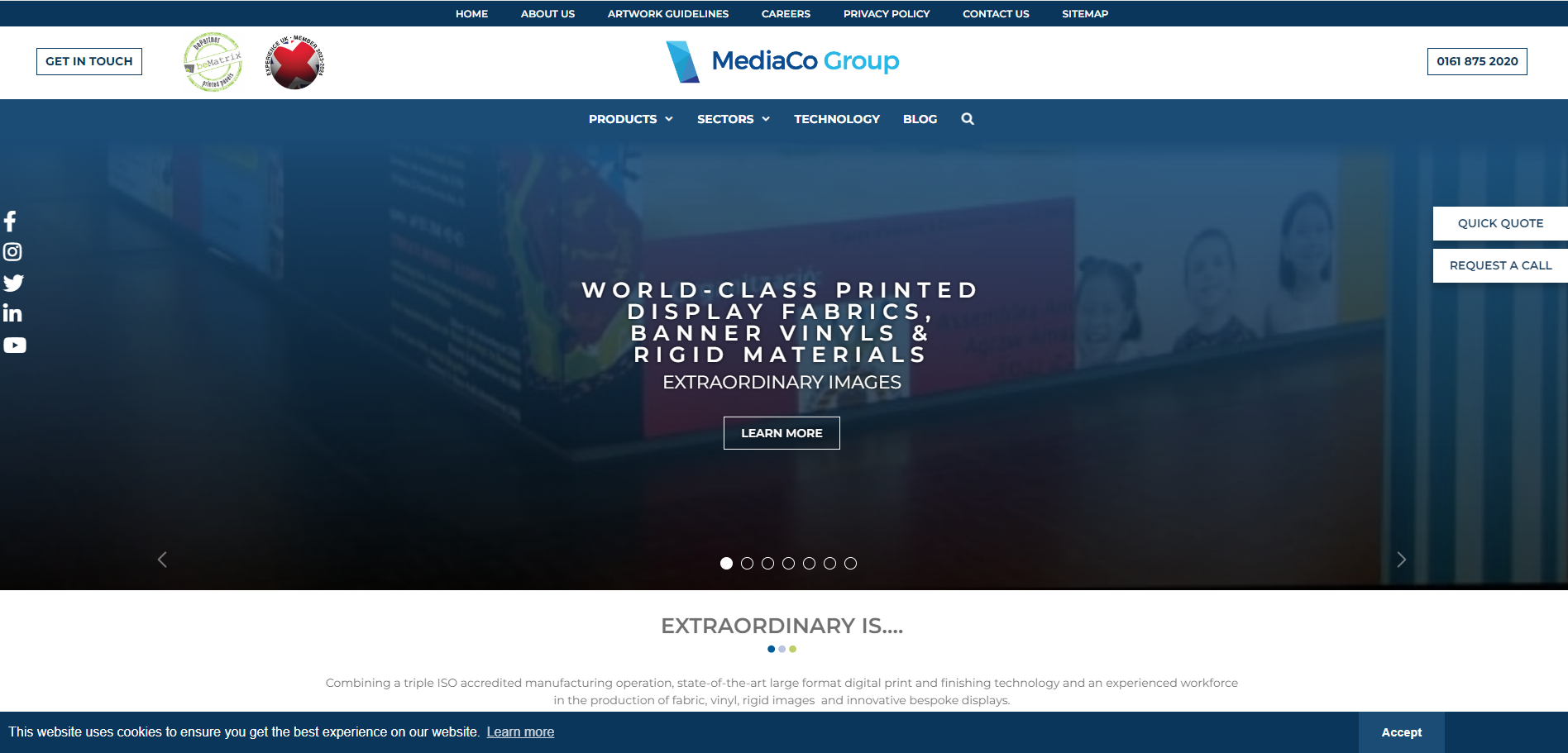 MediaCo is a customer-focused and high-quality-driven organisation who provides Large Format Printing Services including event brand management, logistics and installation. Their popular products include Banners, Signs, Printed Floors, Printed Wallpaper and Flags undergo a strict quality control process to deliver only the best quality. Customers benefit from Free Documented Quality Control, Free Reprints, Free Design Support and a Fast Turnover. The ISO 9001 workflow system runs 7 days a week and is backed up with an in-house reprocessing facility following standards of ISO 14001.