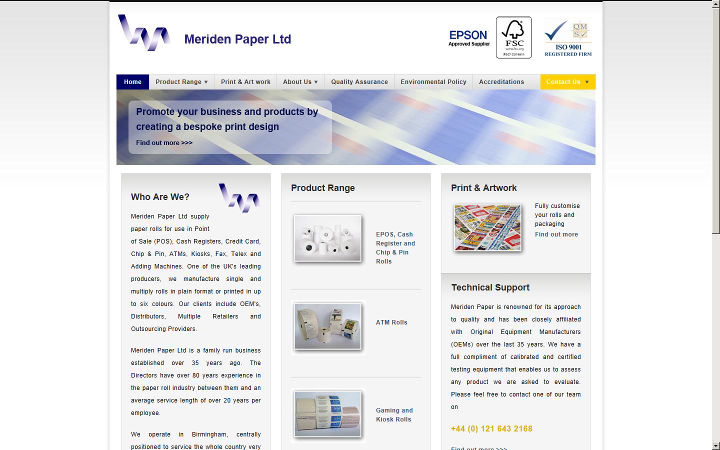 Meriden Paper Ltd supply paper rolls and labels for use in Point of Sale (POS), Cash Registers, Credit Card, Chip & Pin, ATMs, Kiosks, Fax, Telex, Adding Machines and other Data Format Business Machines