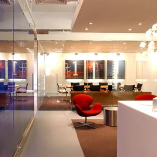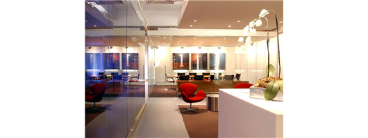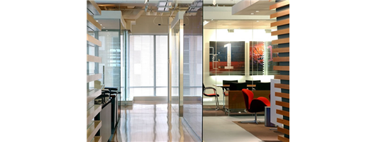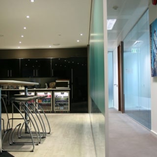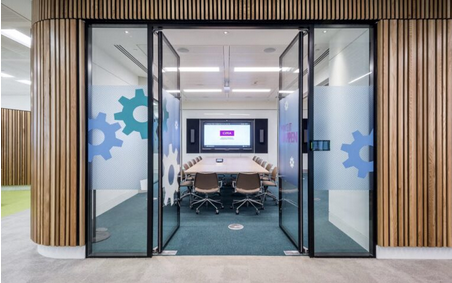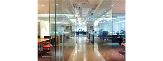 Glass Walls & Glass Door Separating a Lounge Area from the rest of the Working Area
