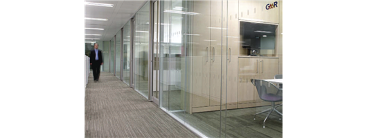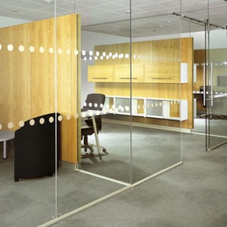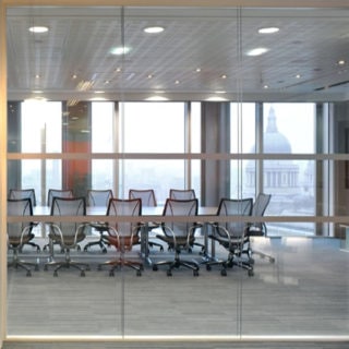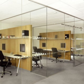 Using different thicknesses of glass in a double glazed partition, we’re able to achieve an acoustic performance of up to 47dB. This system is perfect for boardrooms, private offices, meeting rooms and phone booths and is available in either a fully frameless system or a framed system with vertical mullions.