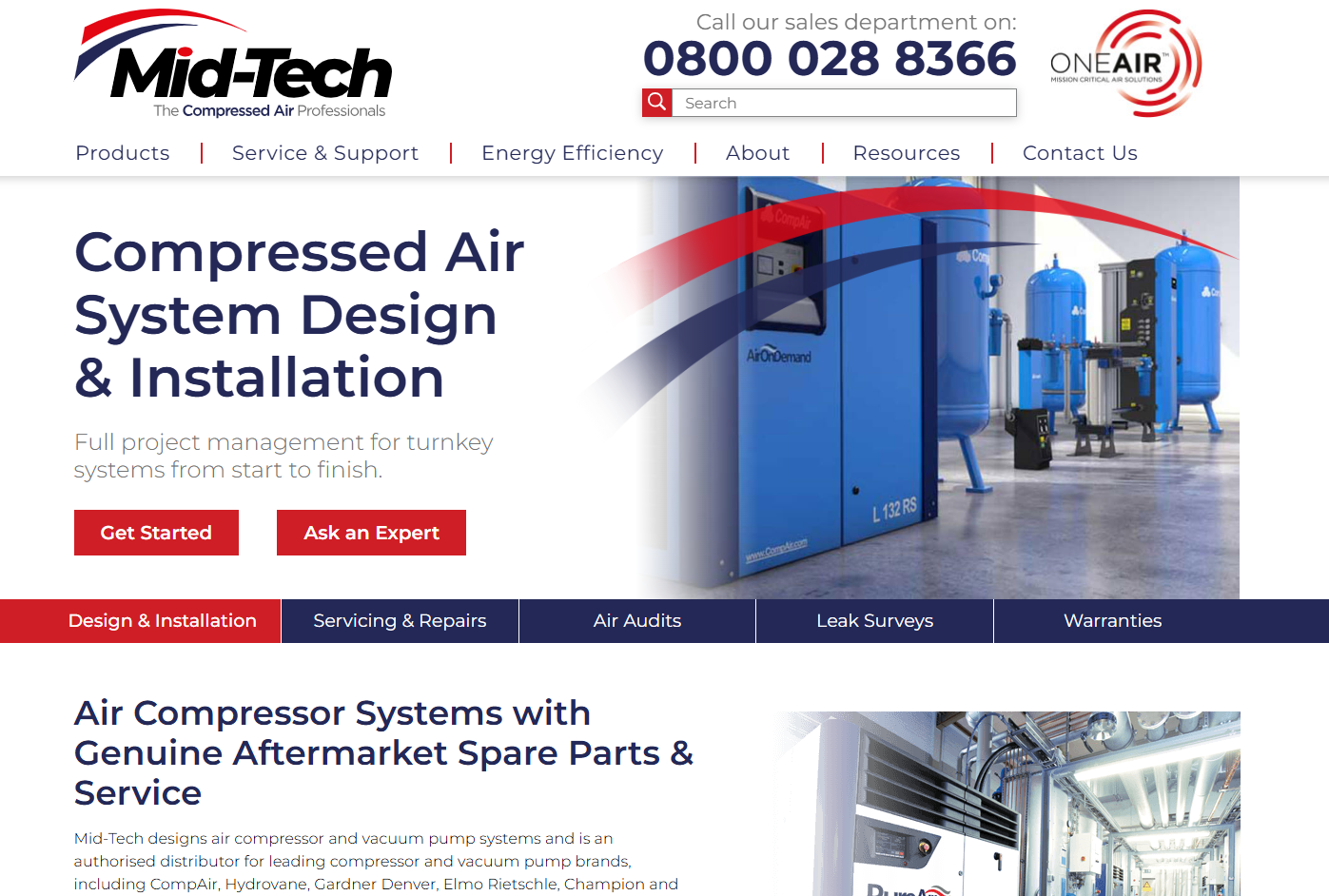 Mid-Tech designs air compressor and vacuum pump systems and is an authorised distributor for leading compressor and vacuum pump brands, including CompAir, Hydrovane, Gardner Denver, Elmo Rietschle, Champion and Reavell. In choosing air compressor and vacuum systems, there are various ways to look at your needs. One way is size. Does your business need a small, portable unit or do you have a large industrial requirement? Another is oil lubricated versus oil-free. As experts, we know which models are best for your applications demanding compressed air or vacuum.