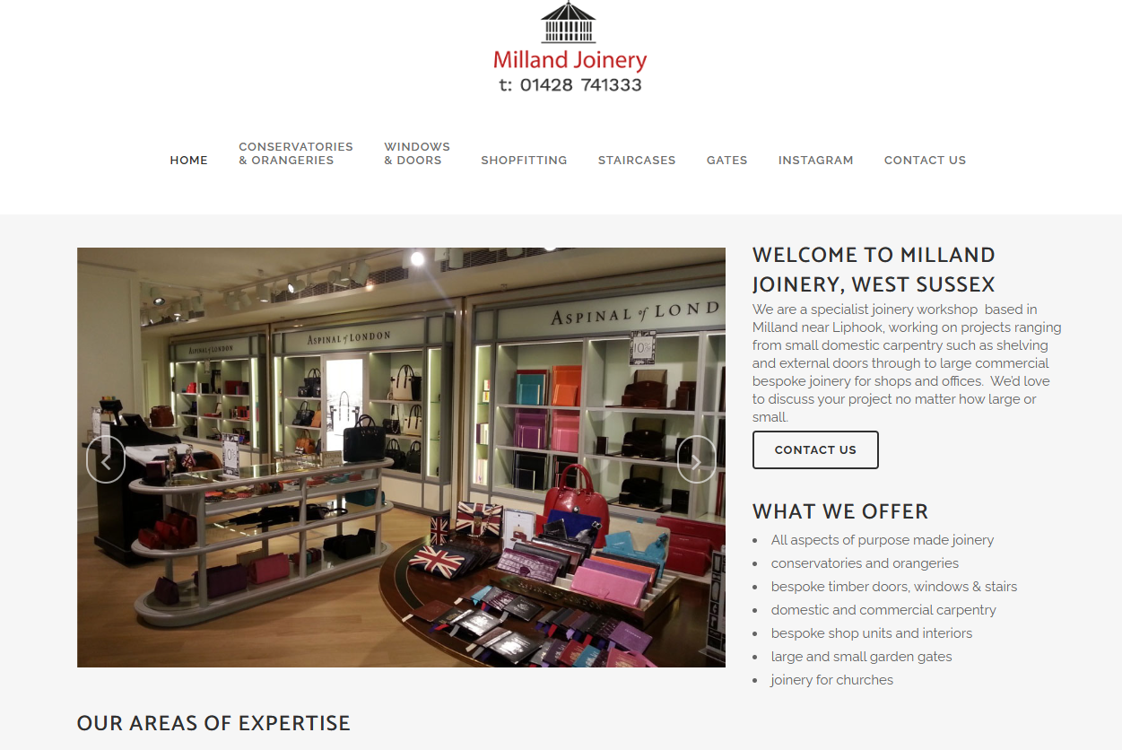 We are a specialist joinery workshop based in Milland near Liphook, working on projects ranging from small domestic carpentry such as shelving and external doors through to large commercial bespoke joinery for shops and offices. We’d love to discuss your project no matter how large or small.