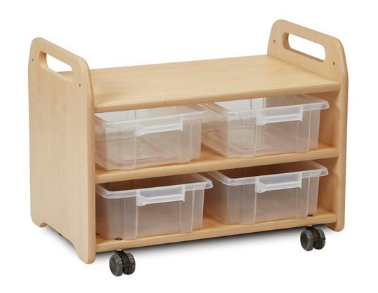 This delightful double-sided trolley is crafted from scratch-resistant maple melamine and features lockable, anti-scratch castors for easy mobility. It offers generous storage space for costumes and accessories, keeping dress-up items organised and accessible.