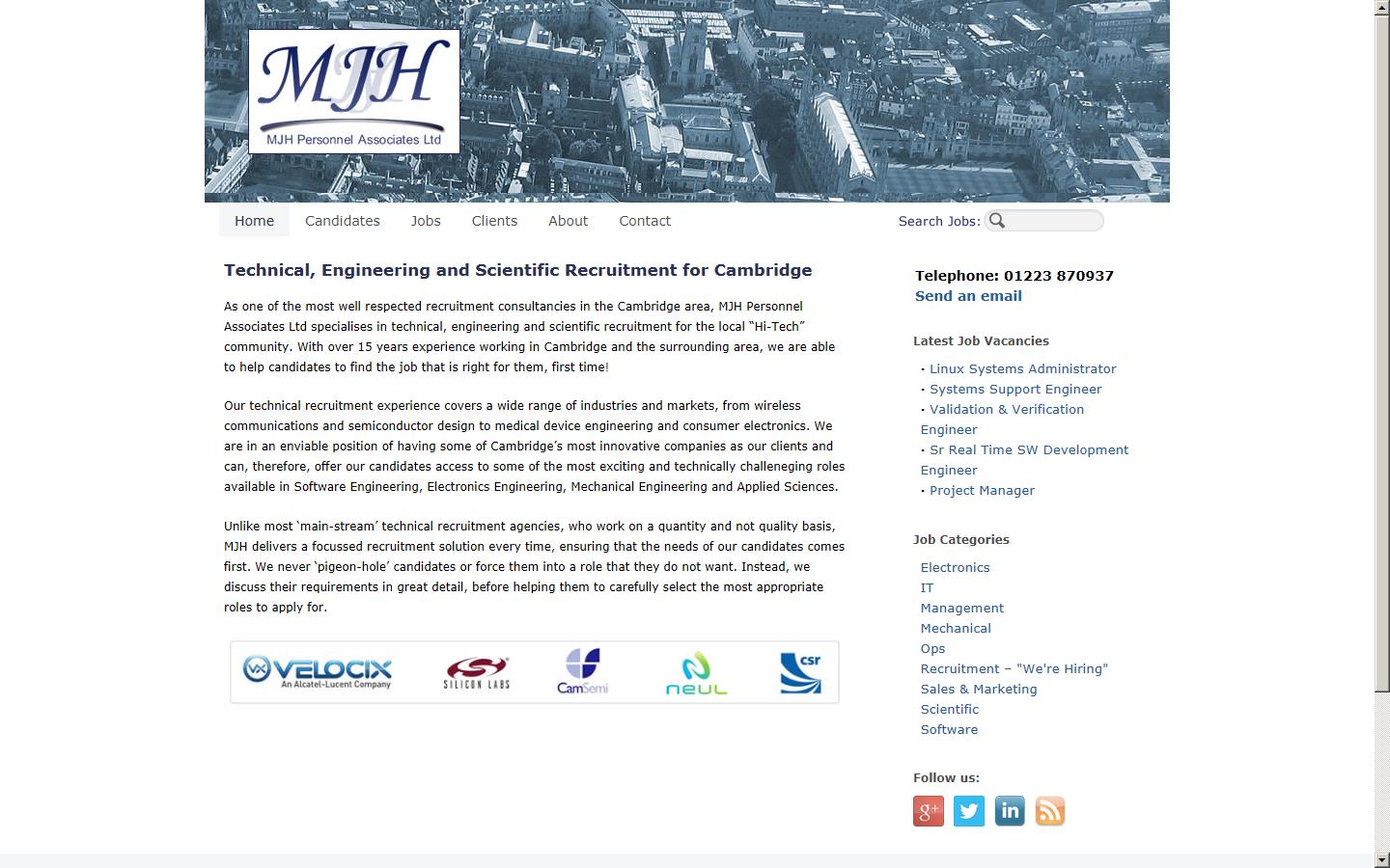 MJH Personnel Associates is a leading Engineering and Scientific recruitment consultancy. With offices situated just outside Cambridge, we help Engineers and Scientists to secure the very best jobs in the Cambridge area. MJH offer a whole host of professional recruitment services and have an enviable reputation for delivering excellent results every time.