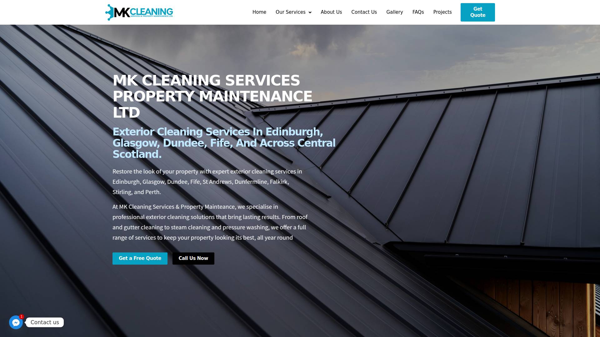 MK CLEANING SERVICES PROPERTY MAINTENANCE LTD Exterior Cleaning Services In Edinburgh, Glasgow, Dundee, Fife, And Across Central Scotland. Restore the look of your property with expert exterior cleaning services in Edinburgh, Glasgow, Dundee, Fife, St Andrews, Dunfermline, Falkirk, Stirling, and Perth. At MK Cleaning Services & Property Mainteance, we specialise in professional exterior cleaning solutions that bring lasting results. From roof and gutter cleaning to steam cleaning and pressure washing, we offer a full range of services to keep your property looking its best, all year round