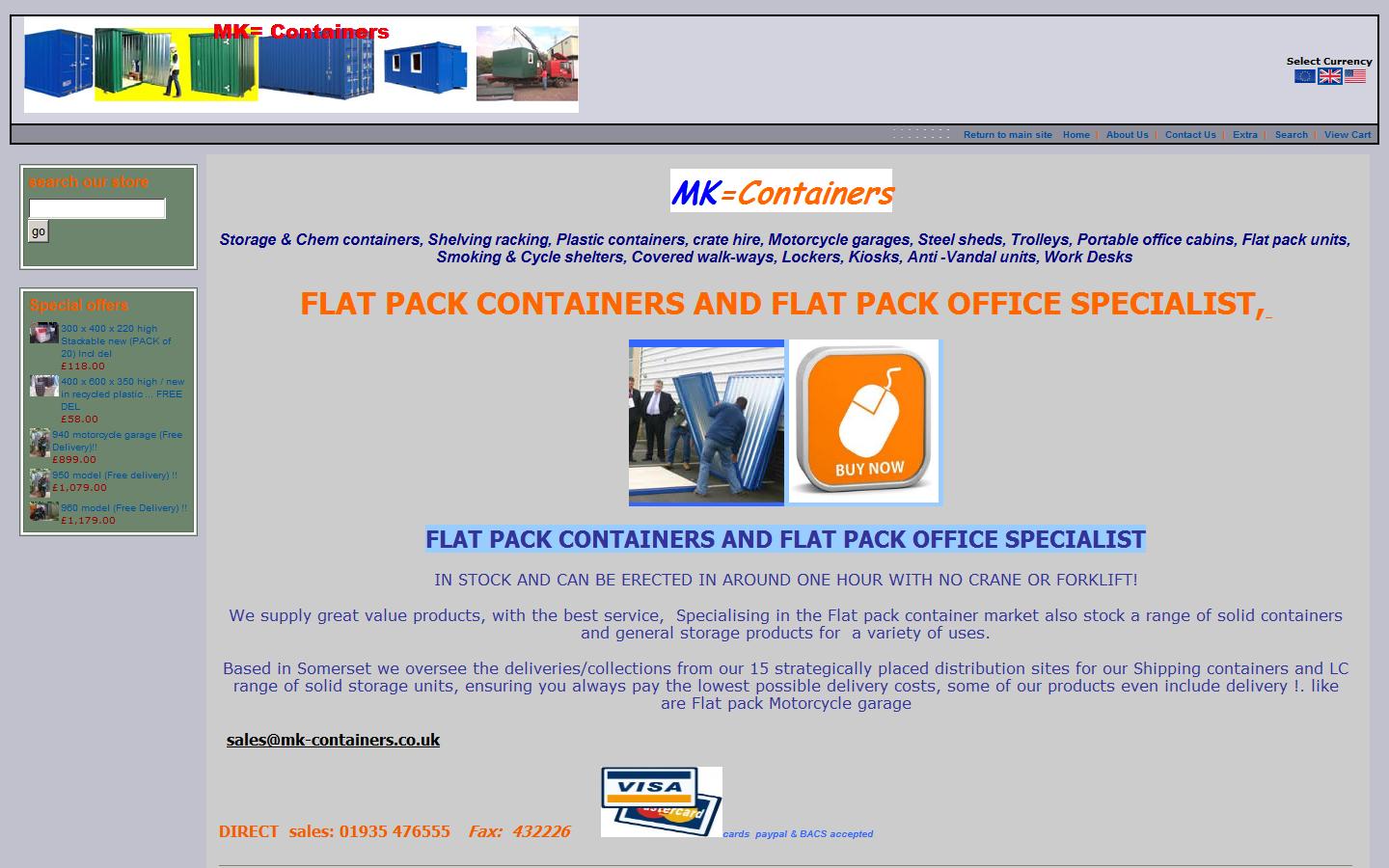 MK are supplying storage and shipping containers , flat pack containers, anti vandal units, office cabins, van & site security boxes, plus shelters and motorcycle garages. MK can offer a basic storage unit or a complex office systems. Most containers and related items are delivered.