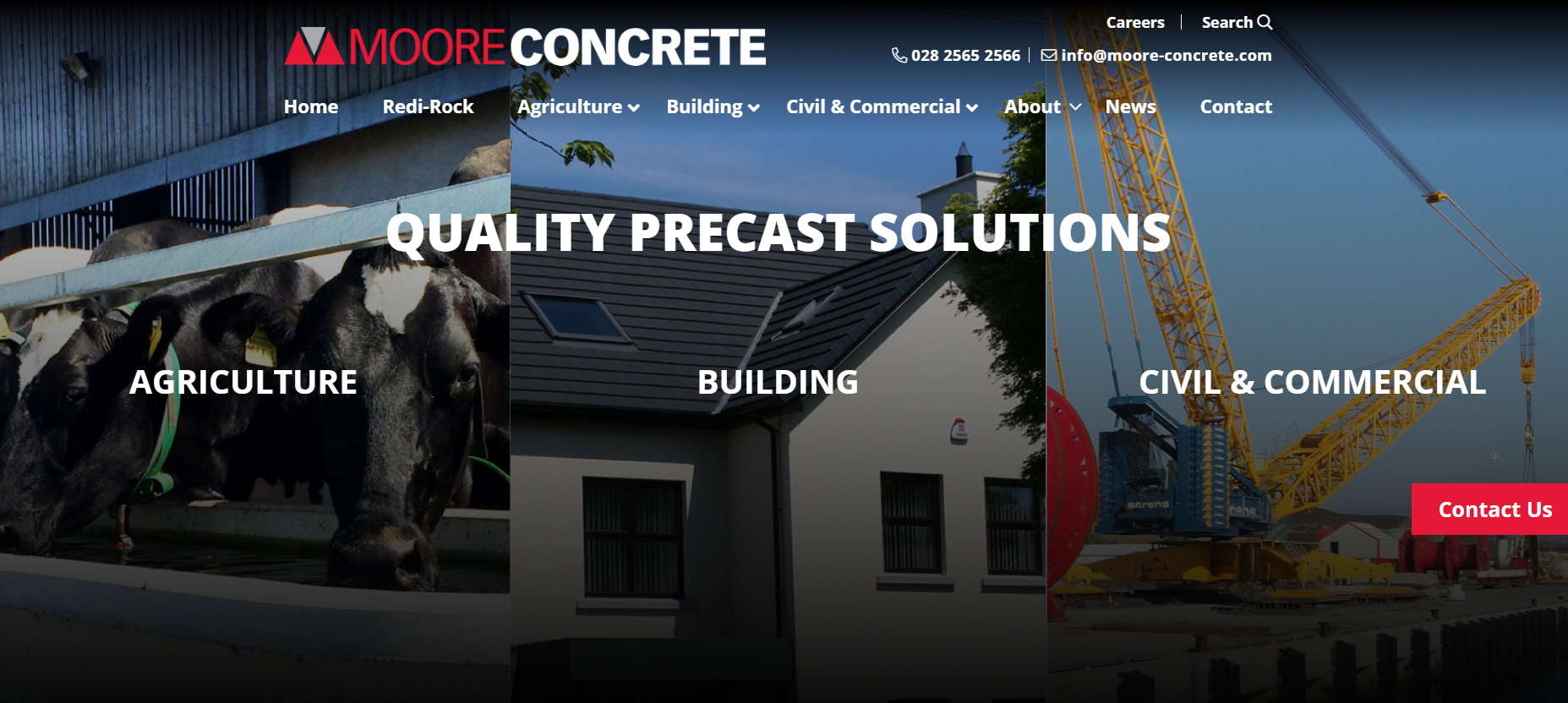 Moore Concrete Products Ltd was founded in 1978 by the company’s present owner and managing director, Mr Wilbert Moore. The first product manufactured in a small shed about 5 miles from the current head office was cattle slats for the agricultural market. With growing demand in 1984 the company moved to its current site on the Woodside Road outside Ballymena.