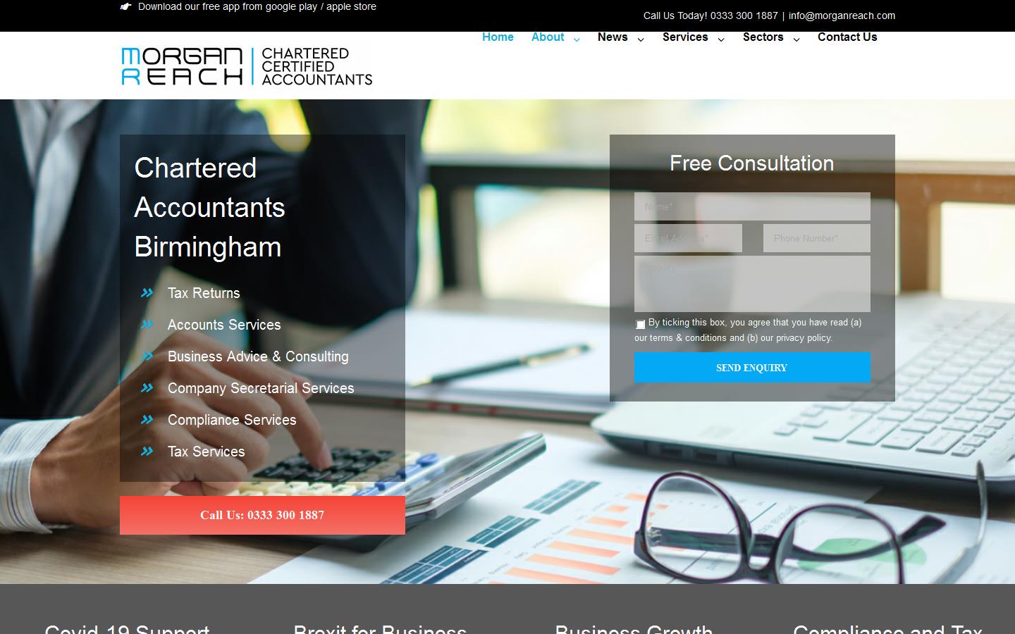 Get a highly professional and comprehensive range of accounting and bookkeeping services for large, medium or small Businesses and tax return for corporate and personal accounts. Morgan Reach provide business advice and consultancy services like outsourced, trusts & estates, grant advisory, corporate finance and strategic planning to improve your business performance. We also provides compliance services like payroll, VAT, Annual Returns and so on. Our professional specialise in providing advice for a variety of business sectors like construction and property, charities and academies, entertainment, media and sports, healthcare, retail, wealth management and more. Book a free no-obligation meeting with us in Birmingham, Kensington, London and Manchester.