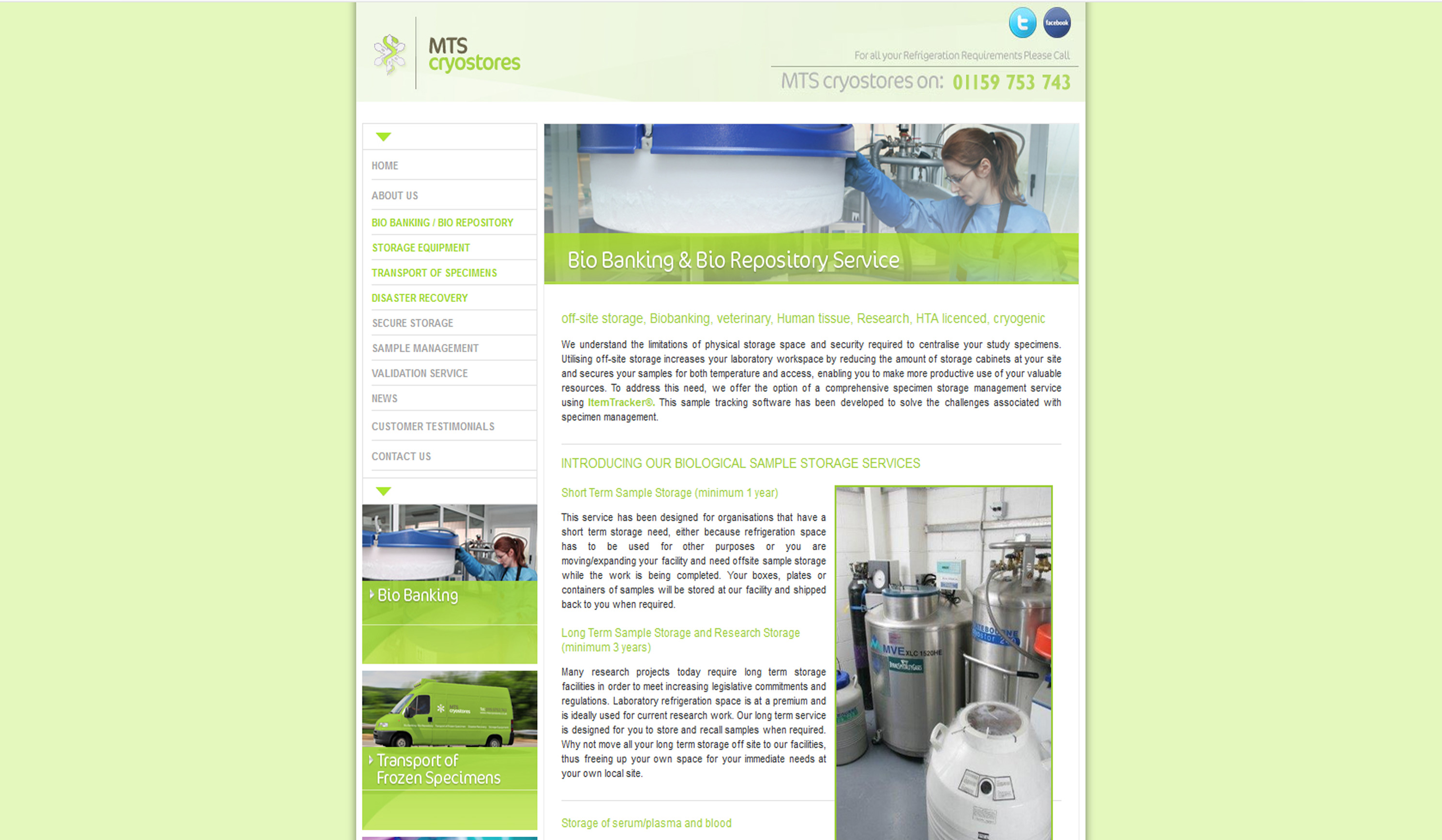 MTS Cryo Stores UK Ltd based in Nottingham, are specialists in Off Site Sample Storage with over 15 years’ experience in our field. We store a range of specimens at our off site bio repository facility including stem cells, clinical trial samples and laboratory research material. MTS Cryo Ltd have been accredited with ISO 9001:2008 certification and carry a Human Tissue Authority (HTA) licence.