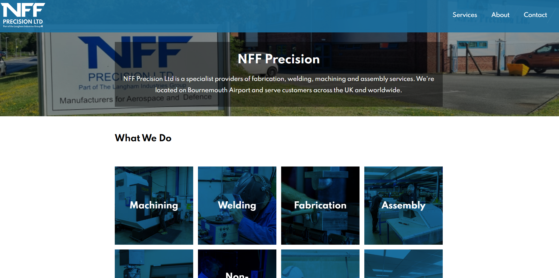 NFF Precision Ltd is a specialist providers of fabrication, welding, machining and assembly services. We're located on Bournemouth Airport and serve customers across the UK and worldwide.