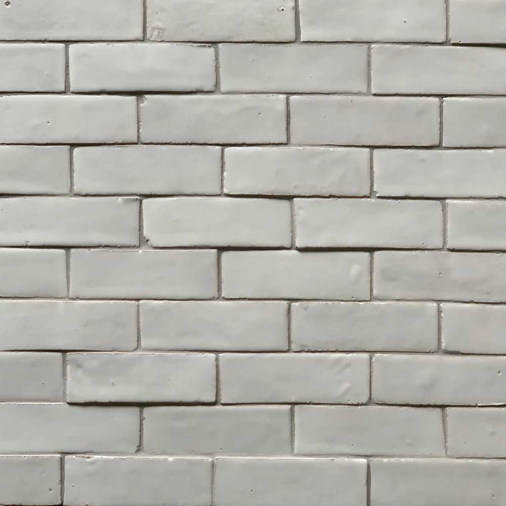 White Moroccan Bejmat tiles with a rich icing-like glaze over the surface and edge with glimpses of warm terracotta tones beneath. Bejmat tiles can be laid in a number of formats including brick bond, herringbone, double herringbone and more. Due to their hand-made and rustic nature, each piece will vary in colour tone and sizes are approximate − these are all characteristics that make up the charm of these tiles.