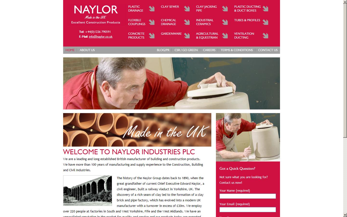 With over 100 years of expertise and craftsmanship with Naylor, we are committed to investing in the continuous development of our people, our technologies and in skills for the future. Our highly skilled team in South and West Yorkshire, Fife and the West Midlands have helped to position Naylor Industries Plc as the market leader it is today exporting globally.