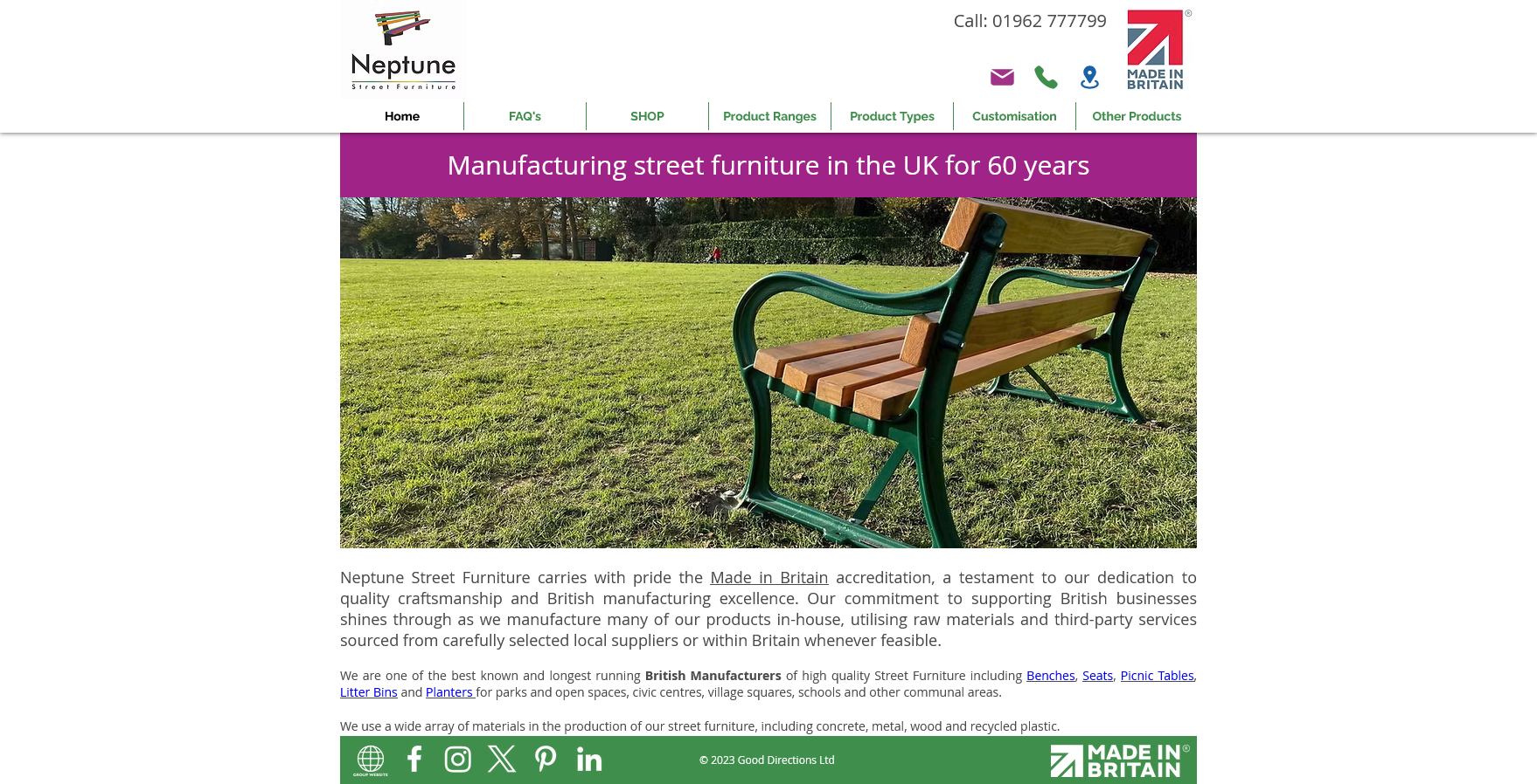 Neptune Street Furniture has been producing high-quality street furniture since the 1960s. Our very first product, the Southampton Seat, was developed in partnership with Southampton City Council and remains a popular choice today. In July 2013, Neptune Outdoor Furniture Ltd was acquired by Good Directions Ltd, a long-time manufacturing partner, allowing us to expand our product range and continue offering British-made street furniture under one unified brand.
