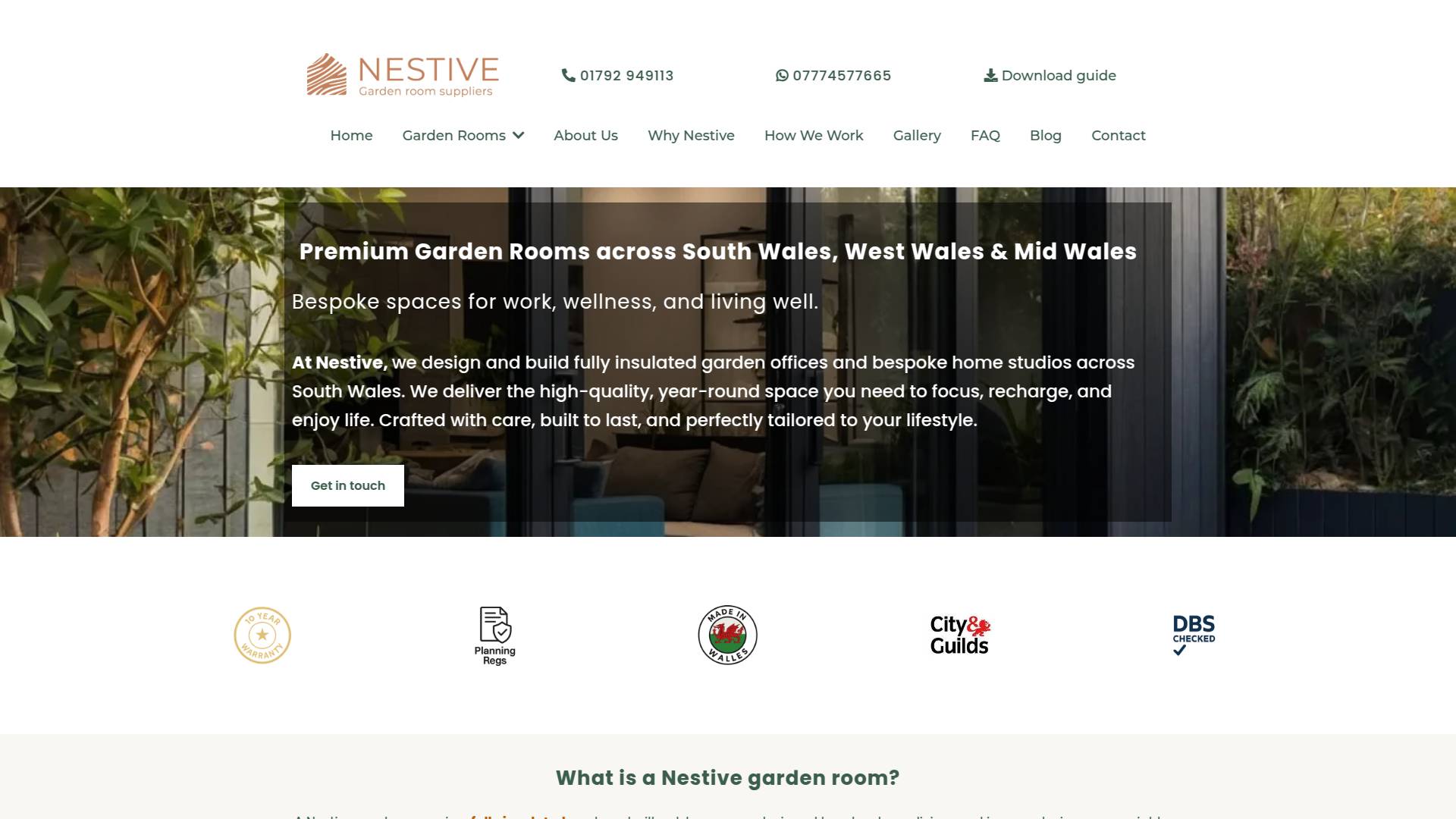 Bespoke, fully insulated garden rooms built across South Wales. Extend your living space for work or wellness with a quality, custom-built Nestive room.