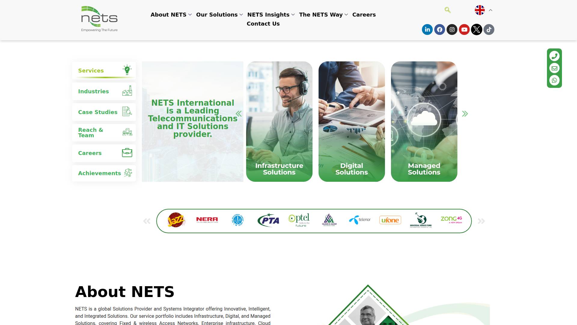 NETS is a global Solutions Provider and Systems Integrator offering Innovative, Intelligent, and Integrated Solutions. Our service portfolio includes Infrastructure, Digital, and Managed Solutions, covering Fixed & wireless Access Networks, Enterprise infrastructure, Cloud Solutions, Cyber Security, Network Solutions, Automation, Resource outsourcing and Managed Services. With over four decades of expertise, we have successfully delivered 3,000+ projects.