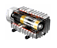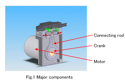 After passing the BDC, the crank start pushing up the cup-seal and thus air in the chamber will push open the discharge valve and go out from outlet port. The cycle consisting of the said 2 stages is repeated as the motor shaft rotates.