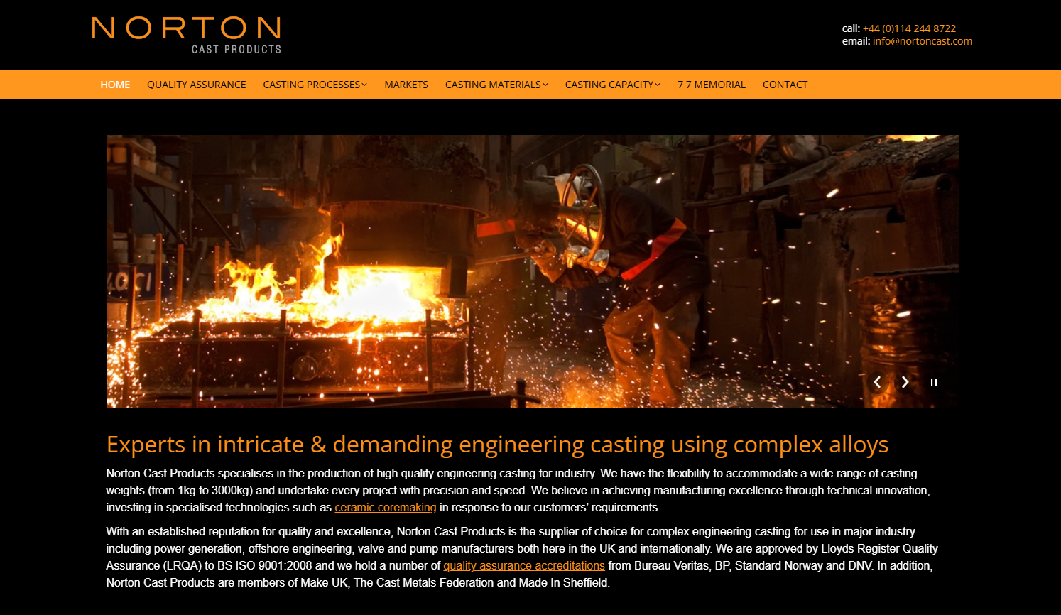 With an established reputation for quality and excellence, Norton Cast Products is the supplier of choice for complex engineering casting for use in major industry including power generation, offshore engineering, valve and pump manufacturers both here in the UK and internationally. We are approved by Lloyds Register Quality Assurance (LRQA) to BS ISO 9001:2008 and we hold a number of quality assurance accreditations from Bureau Veritas, BP, Standard Norway and DNV. In addition, Norton Cast Products are members of Make UK, The Cast Metals Federation and Made In Sheffield.