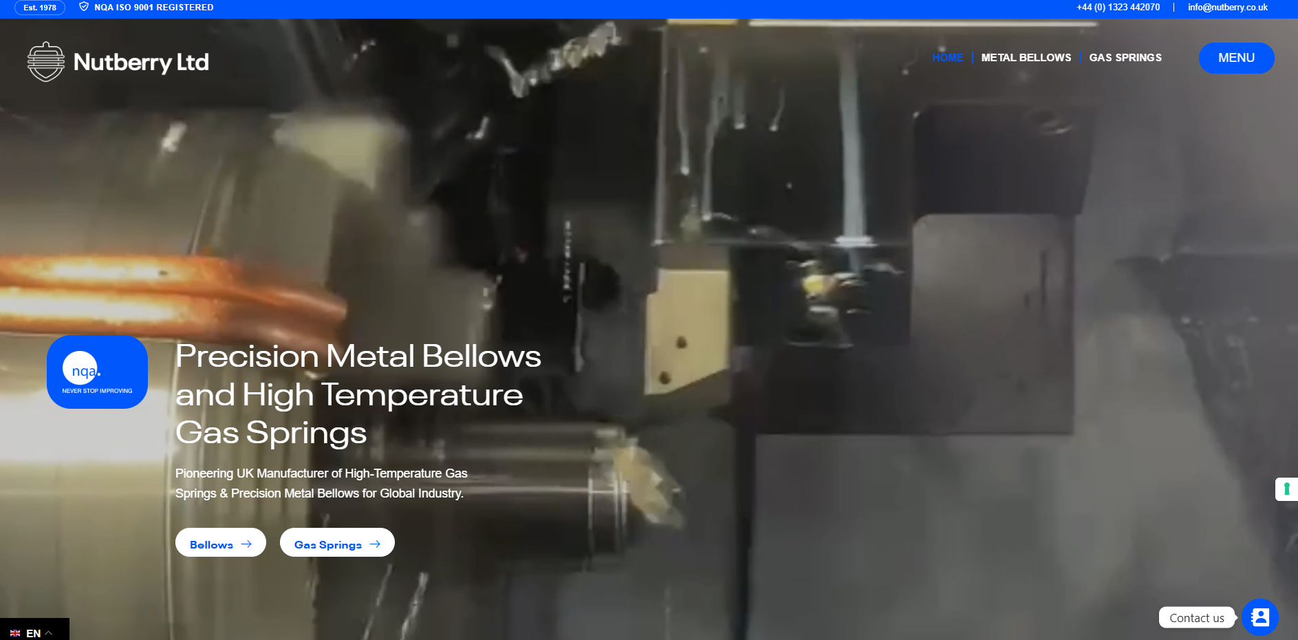 Nutberry Ltd is a privately owned British company established in 1978. For over four decades, we have been at the forefront of manufacturing and internationally supplying high-temperature gas springs for the steel industry and precision formed metal bellows to a range of industries.