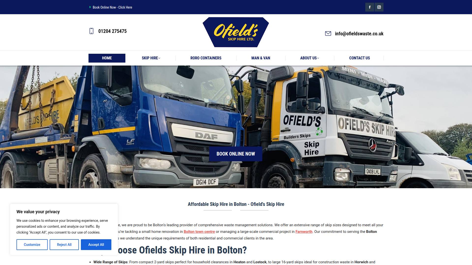 At Ofields Skip Hire, we are proud to be Bolton’s leading provider of comprehensive waste management solutions. We offer an extensive range of skip sizes designed to meet all your needs, whether you’re tackling a small home renovation in Bolton town centre or managing a large-scale commercial project in Farnworth. Our commitment to serving the Bolton community means we understand the unique requirements of both residential and commercial clients in the area.