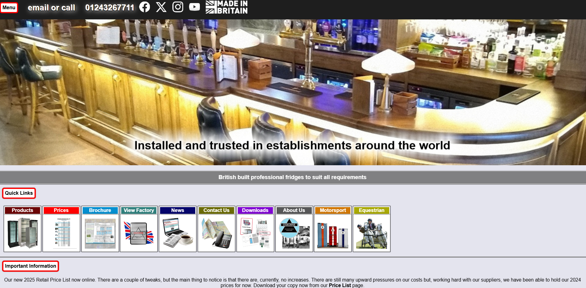 Osborne Refrigerators Ltd have been established at our West Sussex base for over 60 years and we are the leading British manufacturer of refrigerators designed for the chilling and storage of wines, beers, cold beverages and foodstuffs. As well as our professional range of wine and beer display cabinets, which are specified by leading breweries, drinks manufacturers and leisure companies across the world, we have a range of refrigerators designed specifically for milk and also variety of more specialist refrigerators.