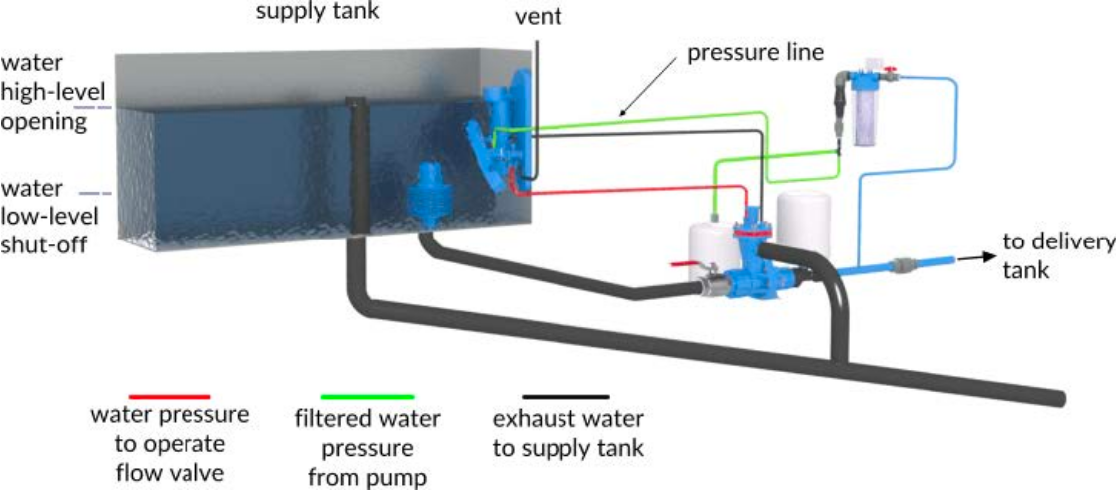 Conversely, as the water level in the supply tank rises, it will cause the float arrangement to reverse the pressure on the diaphragm and allow the flow valve to re-open, automatically restarting the pump.