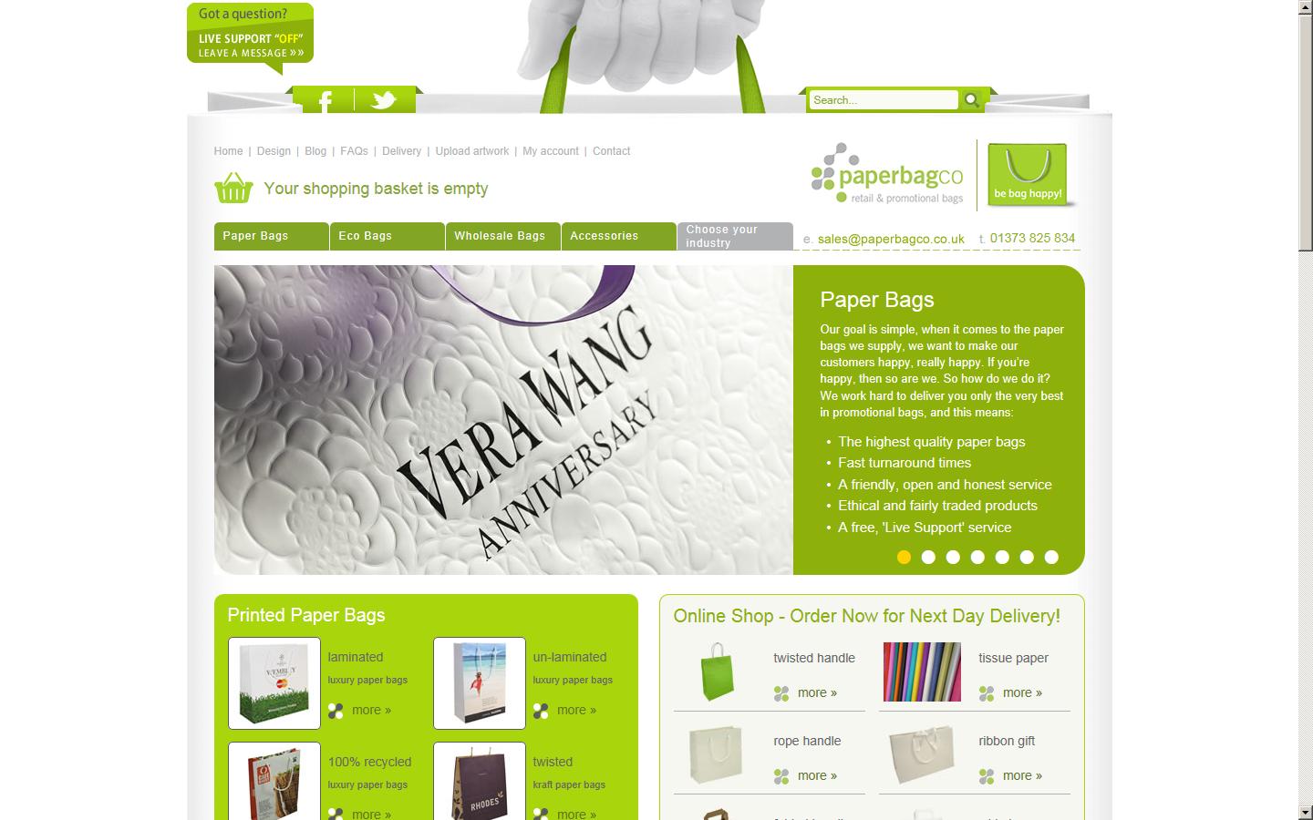 Paper Bag Co sells a wide range of personalised and printed promotional bags. We can print just about anything onto our durable paper bags, which we will help you design to ensure that you end up with attractive, high quality marketing tools. Our paper bags are available in a variety of sizes, finishes, colours and with a choice of handles. These include paper carrier bags, luxury laminated bags, un-laminated paper bags, twisted and folded handle paper bags, counter and satchel bags and paper gift bags. We also stock a range of ECO friendly bag alternatives manufactured from non-woven, cotton, canvas and jute.