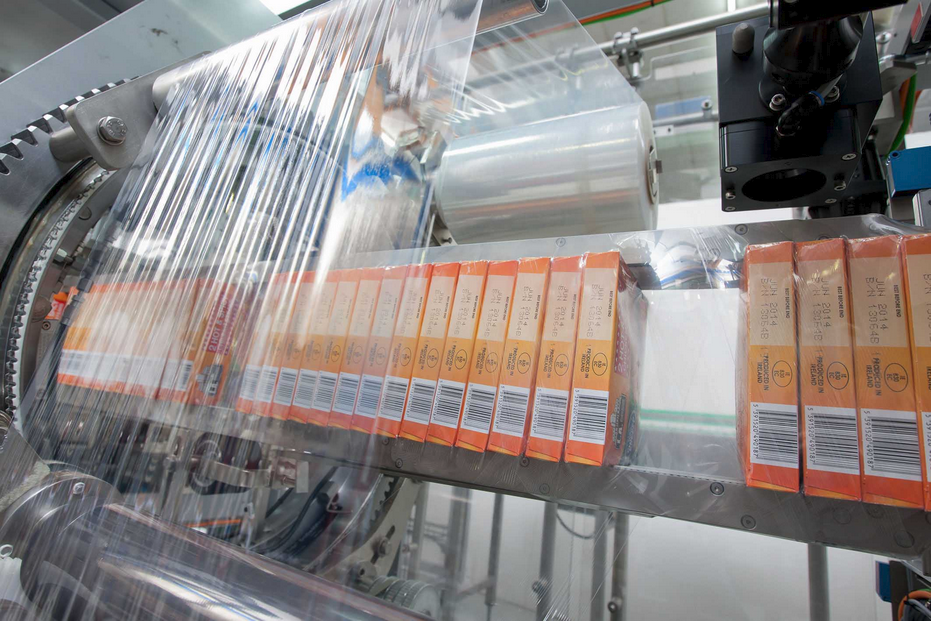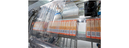 The Meypack stretch-film technology is particularly appropriate when the customer’s priority is packaging for transport. The FW Series stretch-film wrappers use very thin film. Without any external use of energy, which is otherwise necessary in the shrink wrapping process in the shrink tunnel, the film is wrapped two to three times around the product formation. In this way, the pre-stretched film (with an adjustable stretch ratio) is fitted very tightly around the products to be packed, creating a highly stable pack. An electrically heated servo-driven film cutting device separates the packs in a very clean and defined manner.