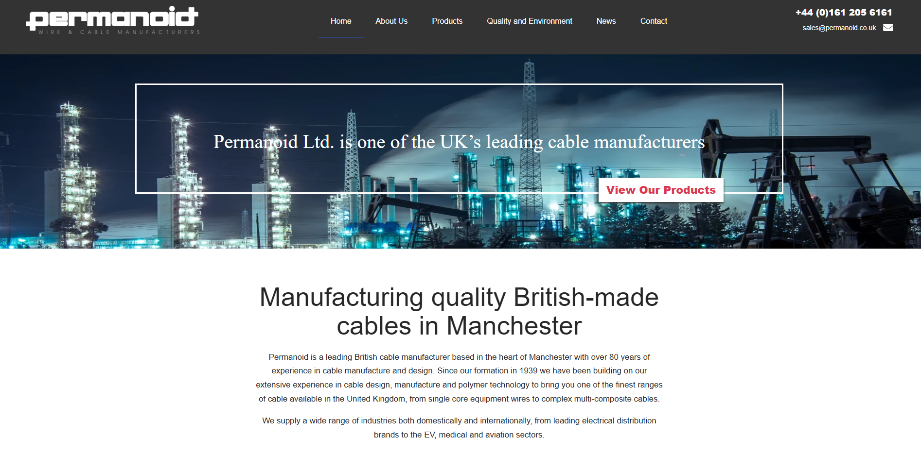 Permanoid is a leading British cable manufacturer, based in the heart of Manchester. Since our formation in 1939 we have been building on our extensive experience in cable design, manufacture and polymer technology to bring you one of the finest ranges of cable available in the United Kingdom, from equipment wires to complex multi-component composite cables. Our loyal client base includes OEMs and distributors operating in electrical, electronics, home entertainment and construction industries both here in the UK and overseas.
