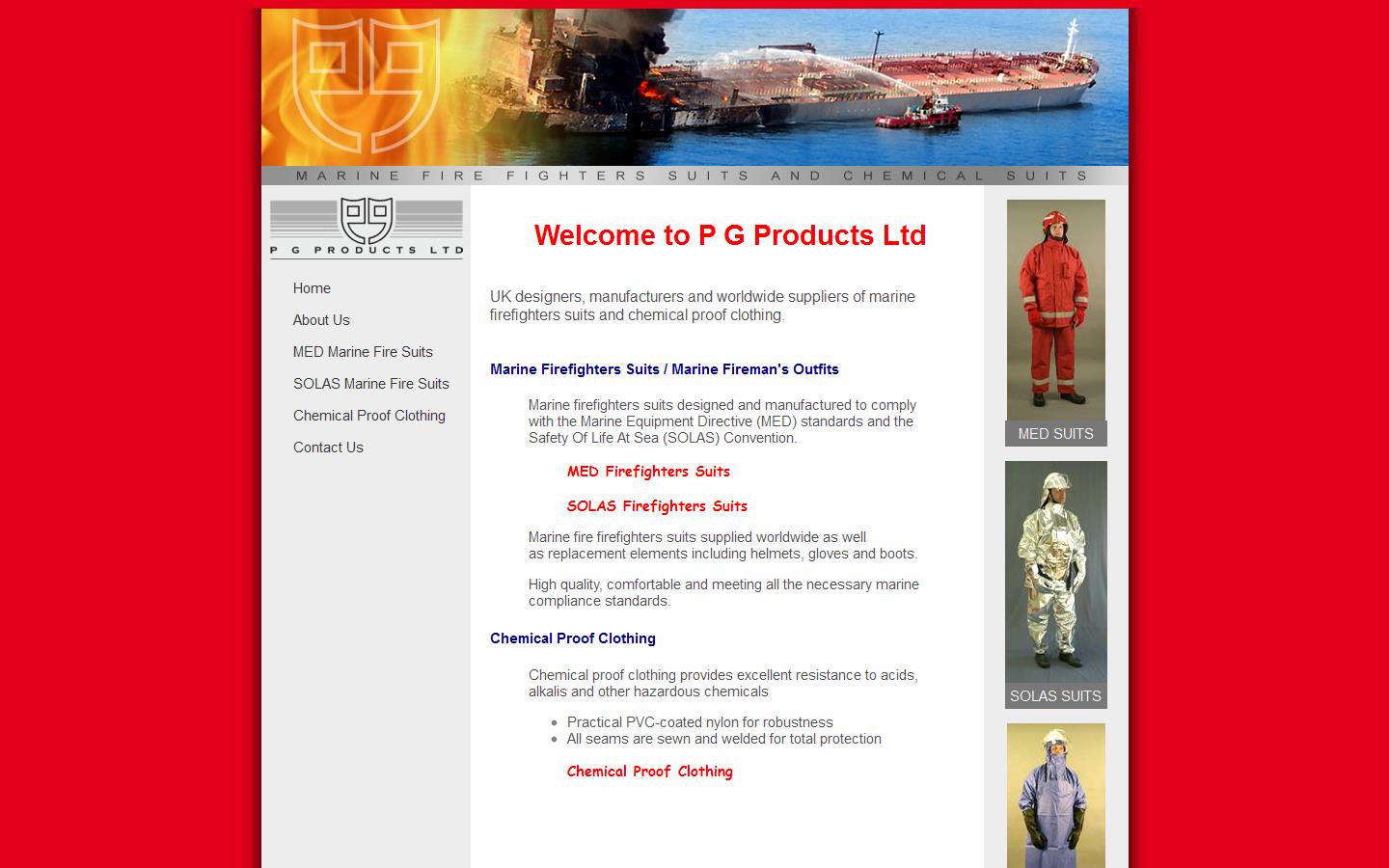 PG Products Ltd are UK based manufacturers specialising in marine firefighters suits and chemical clothing.