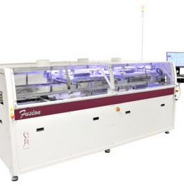 This compact, modular, in-line system utilises the same design concept as the new generation Synchrodex soldering cell, and offers the user significantly reduced process time when compared to using a single soldering unit with on-board fluxing and pre-heat functions. It also provides a reduced footprint and cost savings over the conventional three module, fluxing, pre-heat and selective soldering work cell.
