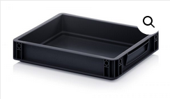 ESD Euro containers are made from electrically conductive plastic and are consequently especially suitable for the safe storage and transportation of electronic goods. Special volume resistance / surface resistance: 10&sup4; < 10¹° Ohm cm.