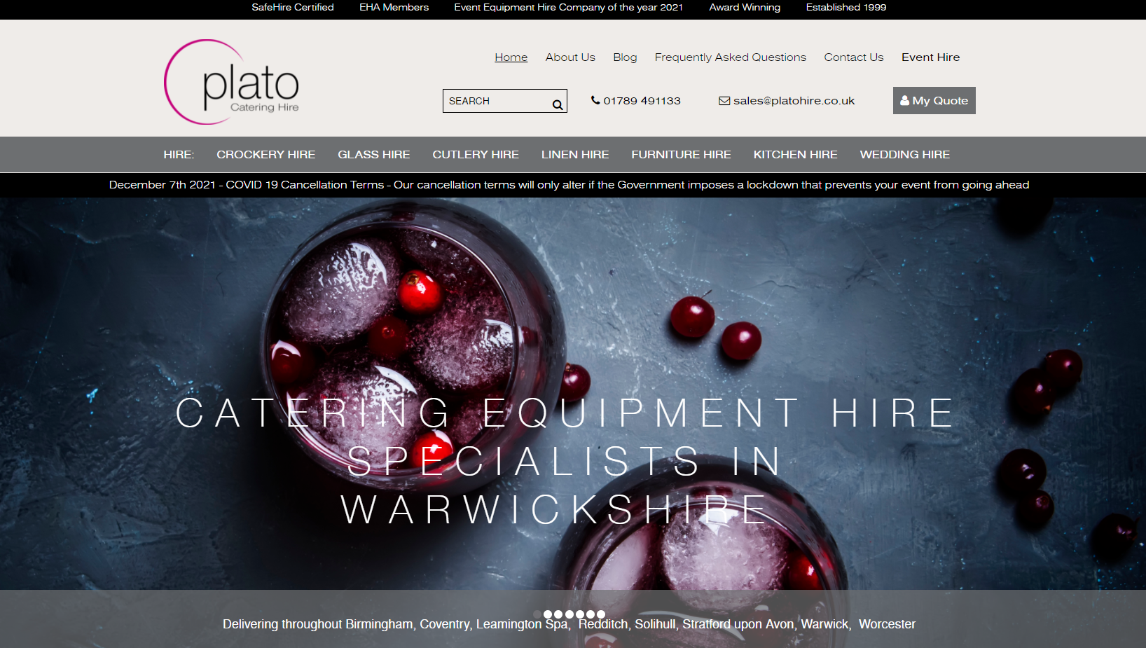 Award winning catering equipment, linen and furniture hire company specialising in the hire of superb quality tableware, glassware, cutlery, linen, furniture and catering equipment.