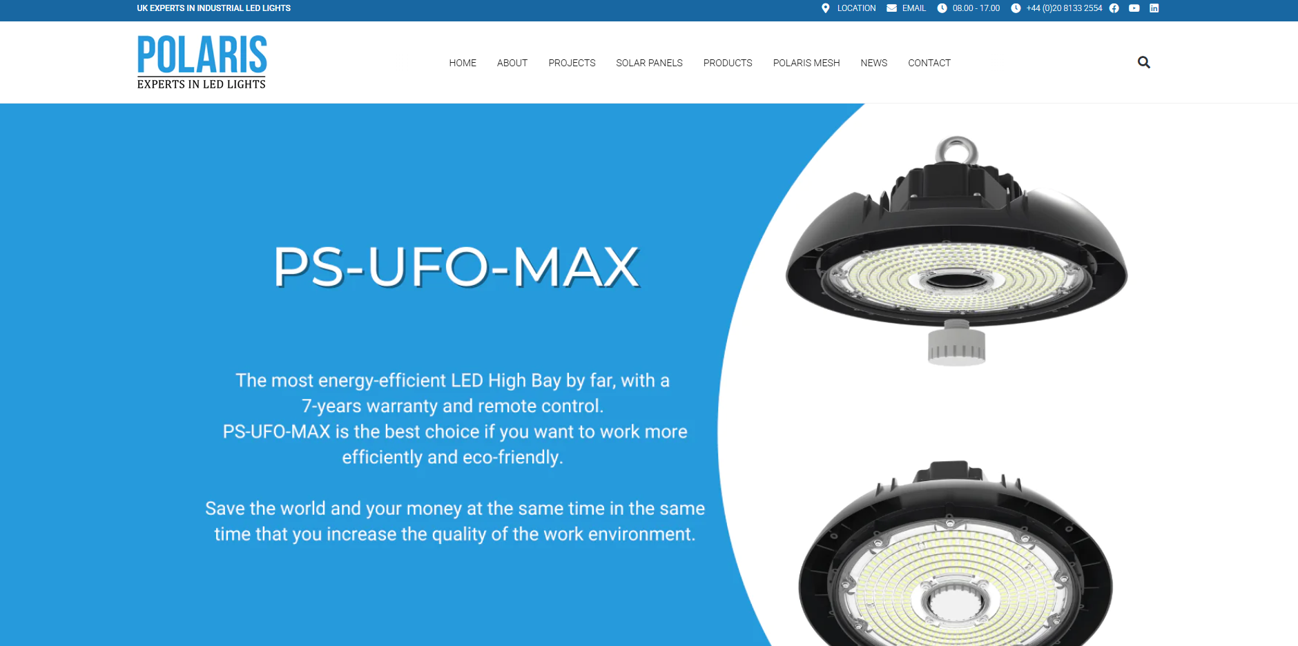 About Polaris Light develops, produces and markets professional lighting solutions with a strong focus on energy savings i.e. high Lumen/Watt. We custom build each fitting specifically to each project, in order to ensure that we provide the optimal solutions every time. Our High bays feature up to a staggering 180 Lm/watt, which provides 70% more light per watt used than competing led high bays.