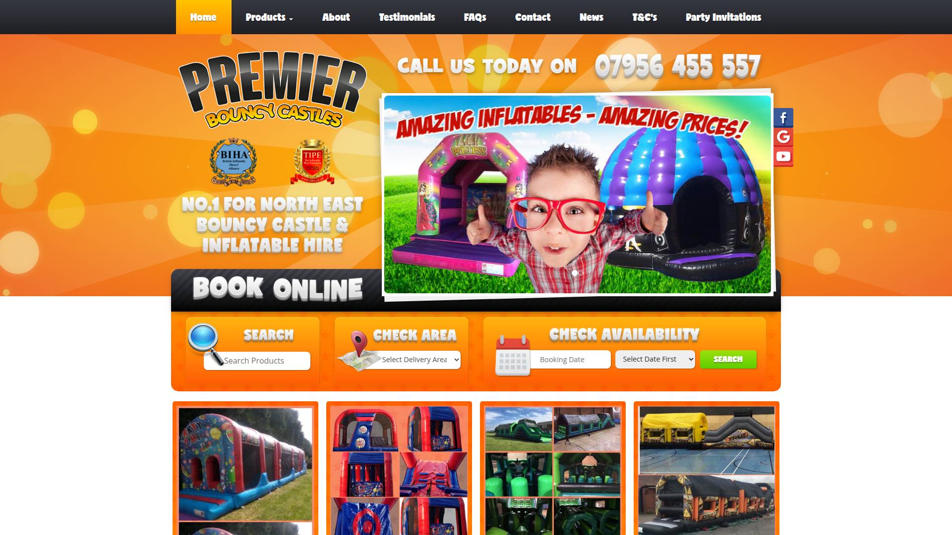 At Premier Bouncy Castles, we specialise in providing a wide range ofinflatable fun for events across the North East of England, includingNewcastle, Sunderland and Durham. From children’s birthday parties toadult team-building days and corporate events, we hire bouncy castles,giant slides, assault courses, rodeo bulls, sumo suits and more. Basedin County Durham, our dedicated team brings years of experience, fullsafety compliance (including 5 million public liability insurance) andfriendly service. Whether you’re planning a school fete, a wedding, acompany event or a private party, we’ll supply the right inflatableequipment and ensure it’s set up and ready so you can focus on the fun.